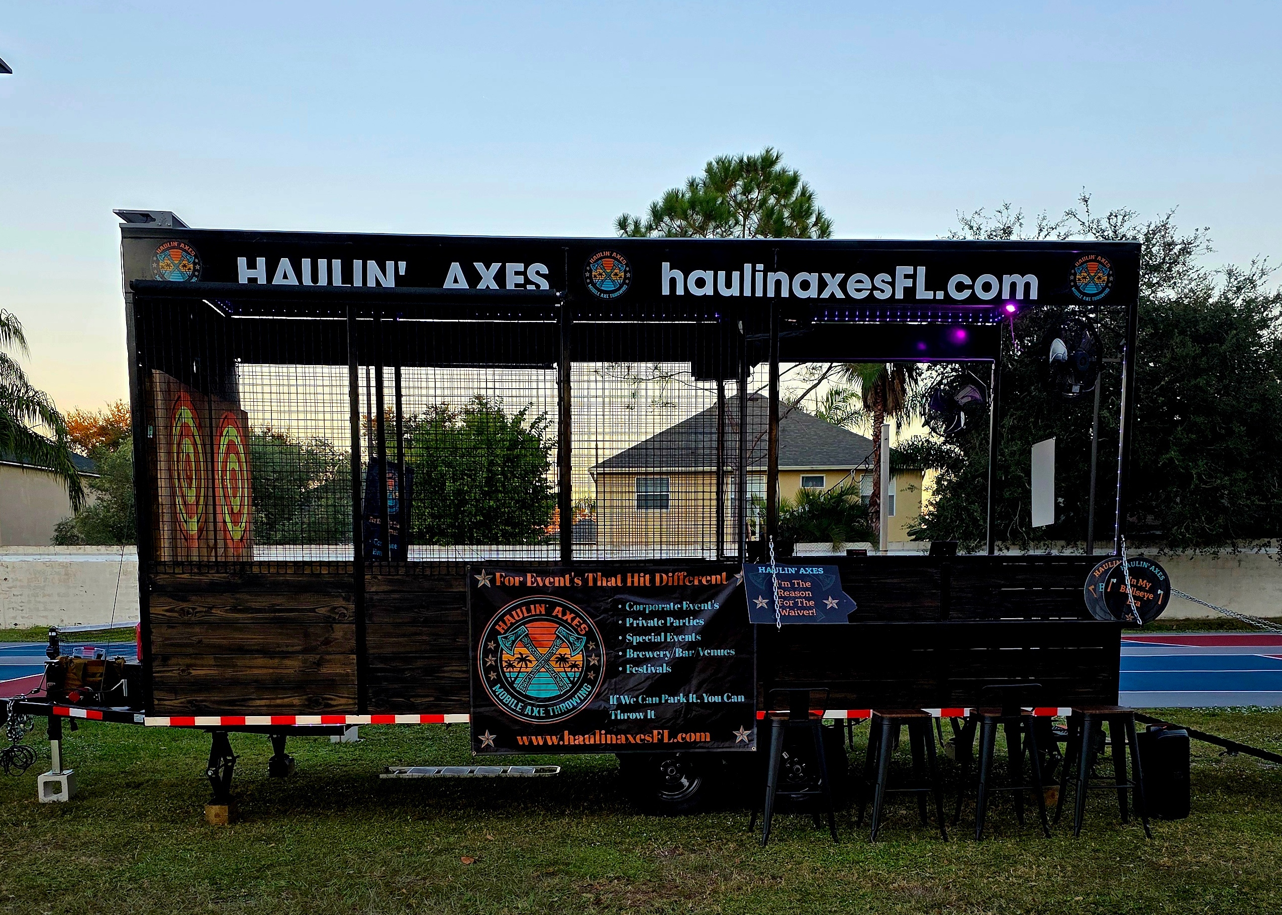 Our custom-built mobile axe throwing trailer brings the thrill of the bullseye directly to your event, fully enclosed, fully mobile, and fully badass.